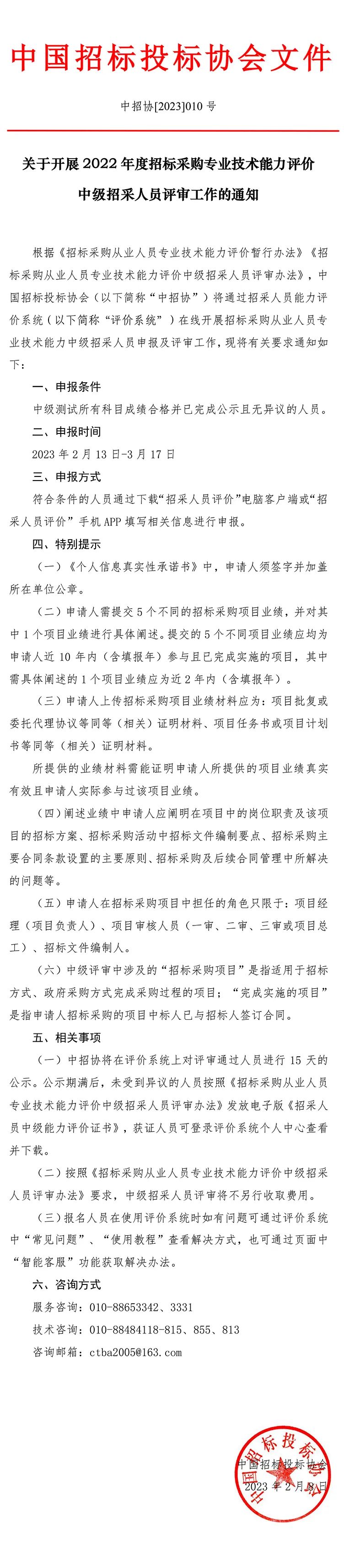 關(guān)于開(kāi)展2022年度招標(biāo)采購(gòu)專業(yè)技術(shù)能力評(píng)價(jià)中級(jí)招采人員評(píng)審工作的通知