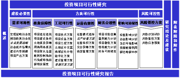 作為可行性研究報告的重要組成部分,“概述”主要綜述項目和項目單位概況、編制依據(jù)、主要結(jié)論和建議等內(nèi)容,便于報告閱讀者快速了解項目概貌,做出初步判斷;“研究結(jié)論和建議”主要歸納提煉項目七個維度研究的結(jié)論,做出項目是否可行的綜合判斷,并對項目需要重點關(guān)注的問題提出建議;“附表、附圖和附件”是支撐可行性研究報告正文的重要依據(jù)和關(guān)鍵證明材料。