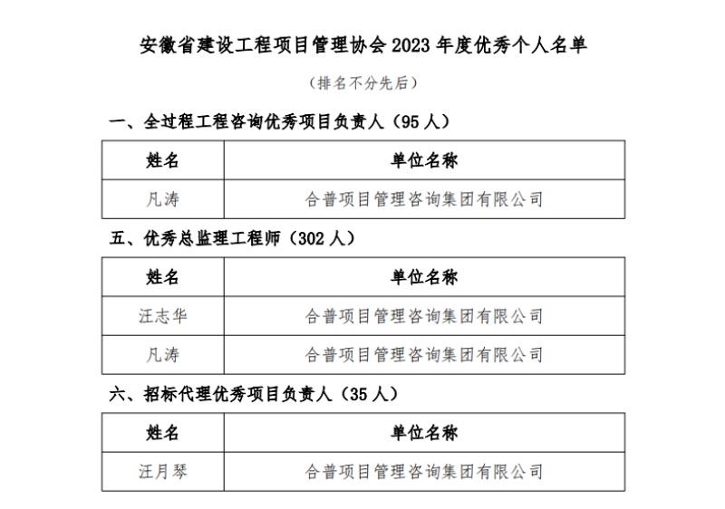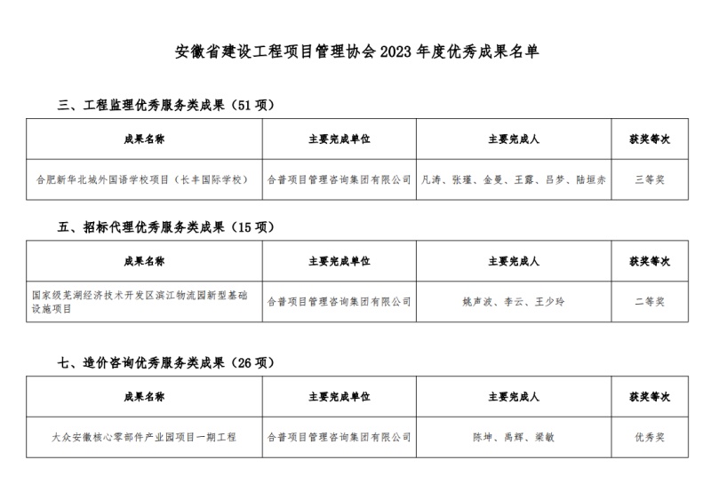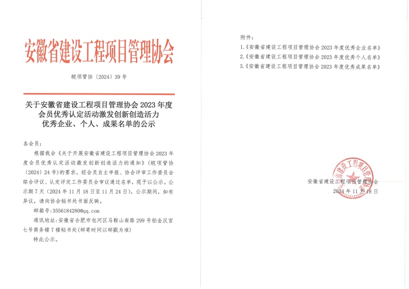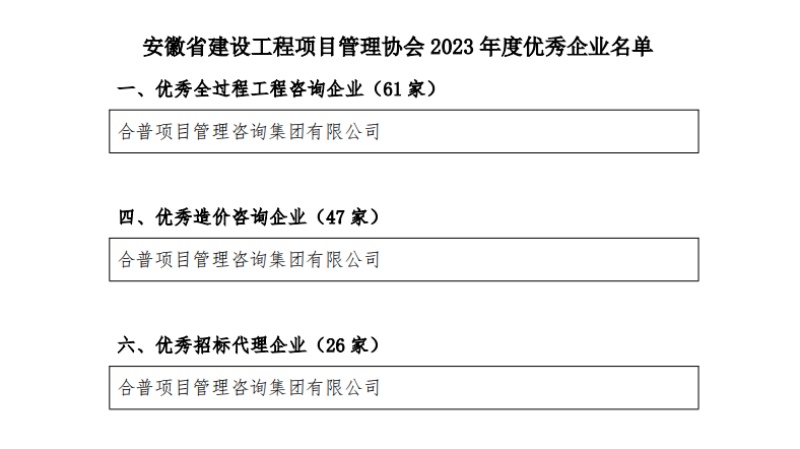 2023 年度,安徽省建設(shè)工程項(xiàng)目管理協(xié)會(huì)開展的會(huì)員優(yōu)秀認(rèn)定活動(dòng)落下帷幕,此次活動(dòng)旨在激發(fā)行業(yè)創(chuàng)新創(chuàng)造活力,集團(tuán)公司及員工攬獲多項(xiàng)榮譽(yù)。