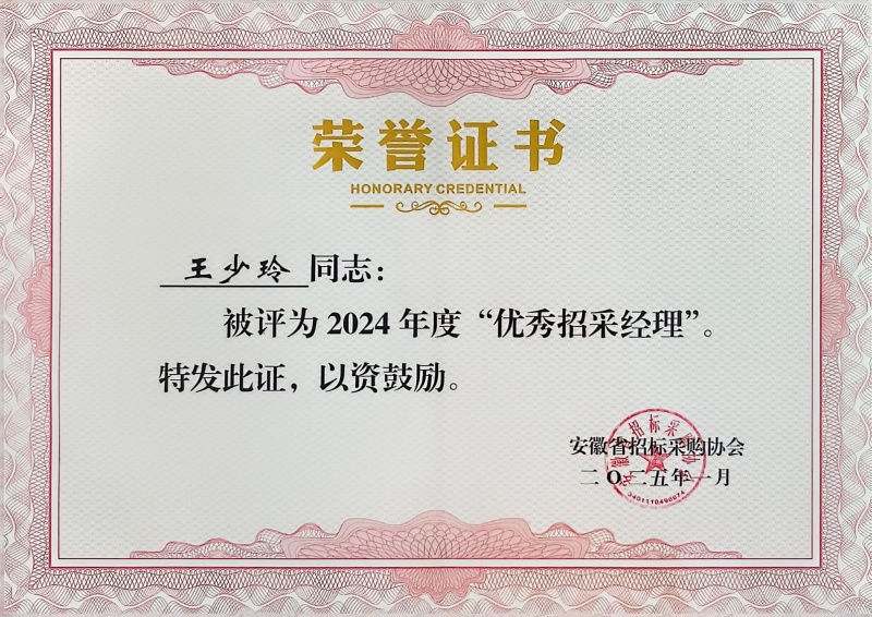 今日上午,一則喜訊傳來(lái),集團(tuán)公司在安徽省招標(biāo)采購(gòu)協(xié)會(huì)的評(píng)選活動(dòng)中榮獲多項(xiàng)殊榮。一舉獲得 “2024 年度優(yōu)質(zhì)招標(biāo)代理機(jī)構(gòu)”、“2024 年度安徽省招標(biāo)采購(gòu)協(xié)會(huì)專家?guī)鞈?yīng)用優(yōu)質(zhì)單位”、“2024 年度招標(biāo)信息發(fā)布規(guī)范單位” 三項(xiàng)榮譽(yù)。與此同時(shí),集團(tuán)王少玲、史新軍、汪月琴三位同志,憑借卓越表現(xiàn),榮獲 “2024 年度優(yōu)秀招采經(jīng)理”稱號(hào)。