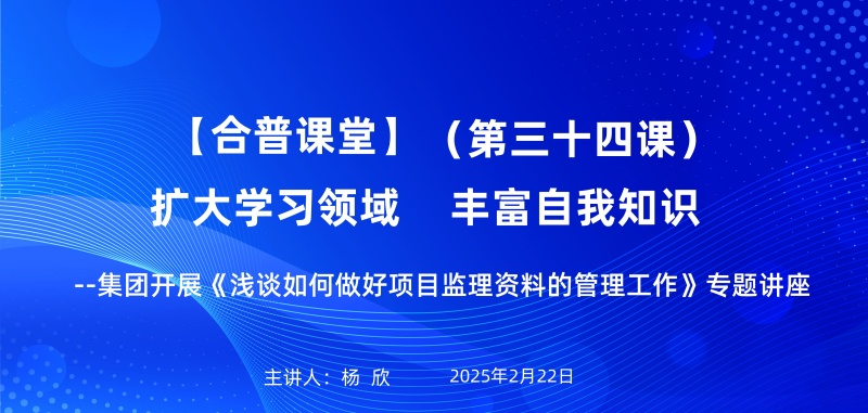 2月22日,合普課堂第三十四期專題講座圓滿舉辦,本期是由監(jiān)理部楊欣,以《淺談如何做好項(xiàng)目監(jiān)理資料的管理工作》為主題,為參訓(xùn)人員帶來(lái)了一場(chǎng)兼具理論深度與實(shí)踐指導(dǎo)的精彩課程。本次講座聚焦監(jiān)理資料管理的核心要點(diǎn),結(jié)合行業(yè)規(guī)范與真實(shí)案例,系統(tǒng)梳理了監(jiān)理資料從編制到歸檔的全流程管理方法,為企業(yè)提升項(xiàng)目管理水平提供了重要參考。