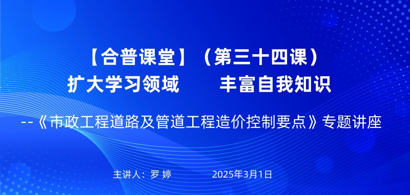 為進(jìn)一步提升員工專業(yè)素養(yǎng),強(qiáng)化市政工程項(xiàng)目造價(jià)管控能力,3月1日,“合普課堂”第三十五期專題培訓(xùn)正式開(kāi)講。本次課程特邀集團(tuán)造價(jià)部資深造價(jià)師羅婷,以《市政工程道路及管道工程造價(jià)控制要點(diǎn)》為主題,為員工帶來(lái)了一場(chǎng)兼具理論深度與實(shí)踐指導(dǎo)的專題講座。