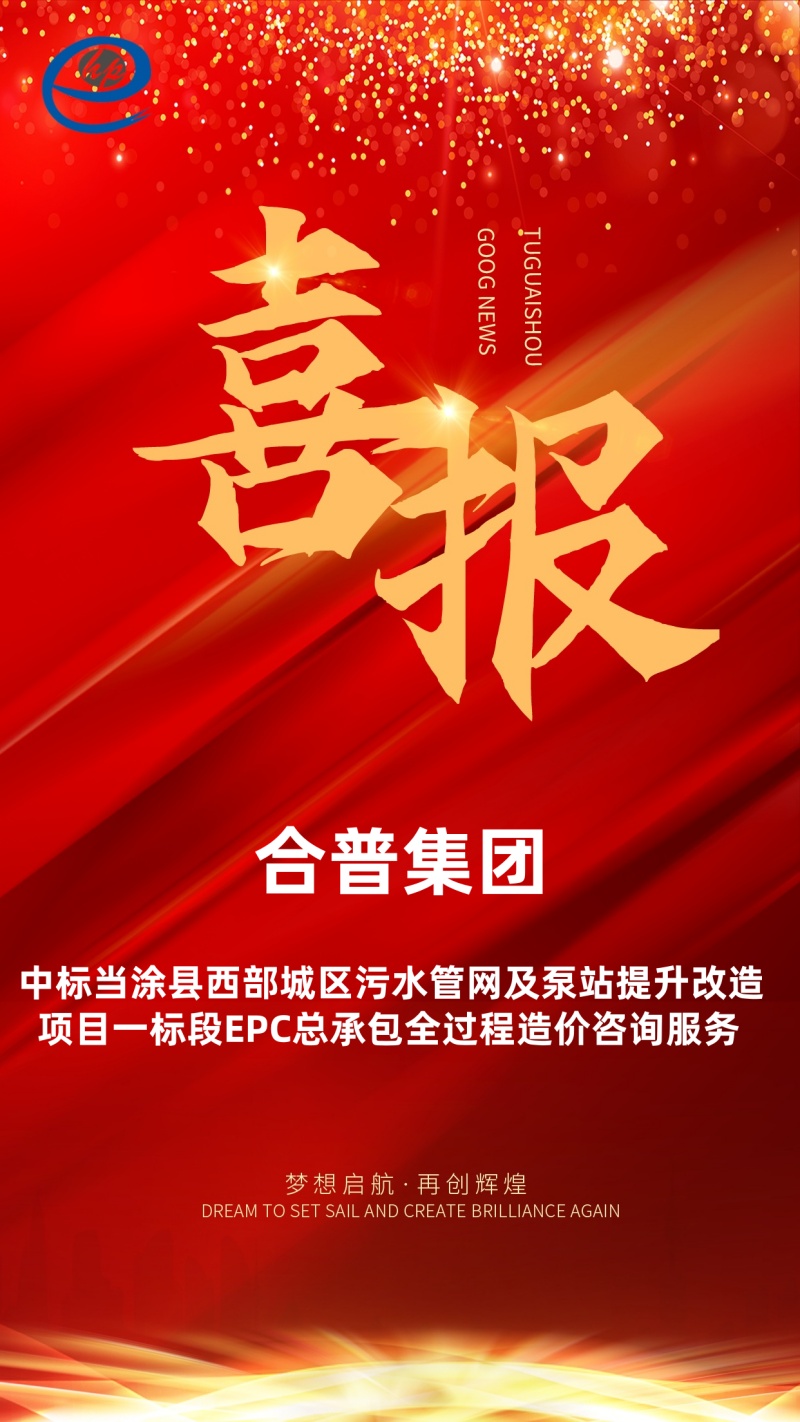 喜報(bào) ▏合普集團(tuán)中標(biāo)當(dāng)涂縣西部城區(qū)污水管網(wǎng)及泵站提升改造項(xiàng)目一標(biāo)段EPC總承包全過程造價(jià)咨詢服務(wù)