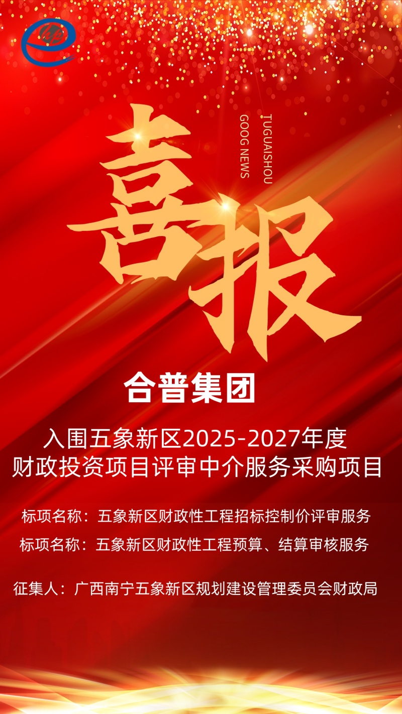 喜報 ▏合普集團(tuán)入圍廣西南寧五象新區(qū)2025-2027年度財政投資項目評審中介服務(wù)采購項目