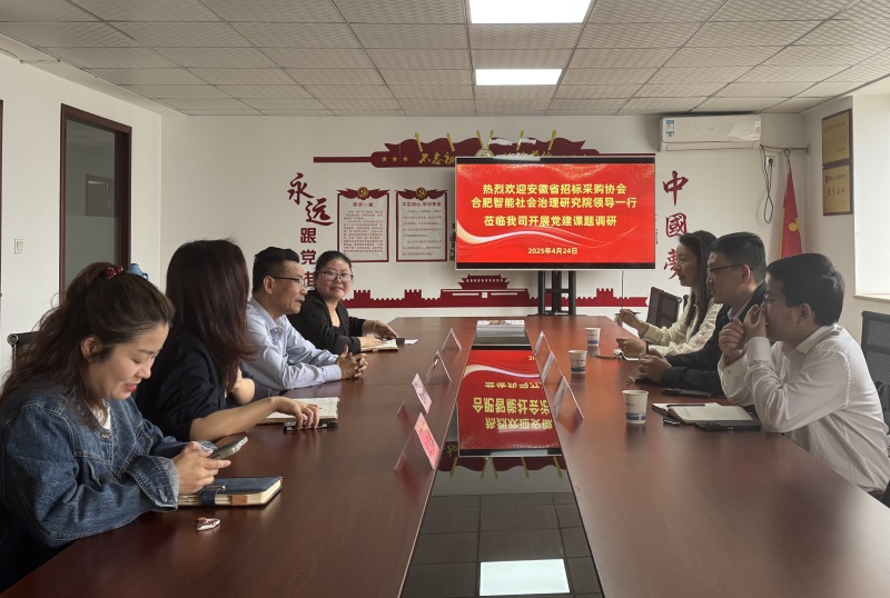 4月24日,省招標(biāo)采購協(xié)會黨支部書記賈海波、合肥智能社會治理研究院高級研究員一行蒞臨我司,圍繞企業(yè)黨建工作開展專題調(diào)研。集團領(lǐng)導(dǎo)高度重視此次調(diào)研活動,黨務(wù)工作者焦愛麗作綜合匯報,雙方就黨建工作成效與不足,創(chuàng)新實踐及未來發(fā)展方向展開深入交流。