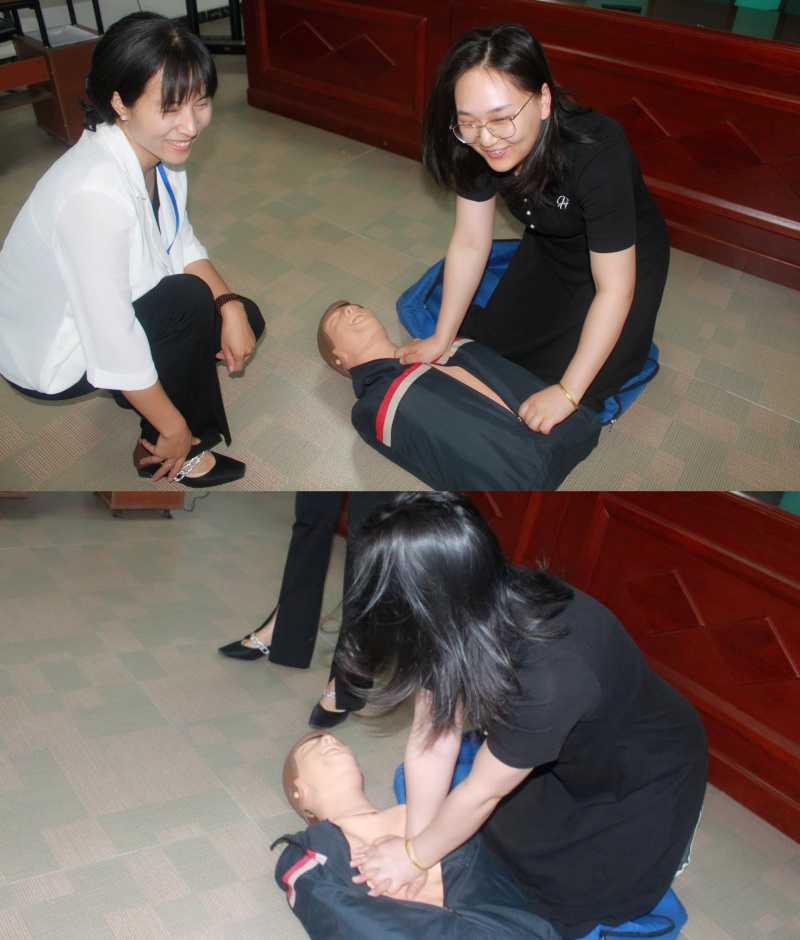 講座從急救技能切入,重點演示了心肺復(fù)蘇術(shù)(CPR)的核心操作,強(qiáng)調(diào)“黃金4分鐘”對挽救生命的重要性。講師通過模擬演練,指導(dǎo)員工學(xué)習(xí)環(huán)境安全評估、規(guī)范按壓手法等關(guān)鍵步驟,提醒大家在突發(fā)情況下保持冷靜,科學(xué)施救。