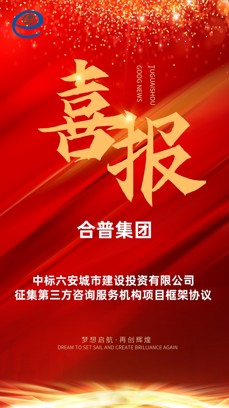 喜報 ▏合普集團中標六安城市建設(shè)投資有限公司征集第三方咨詢服務(wù)機構(gòu)項目框架協(xié)議