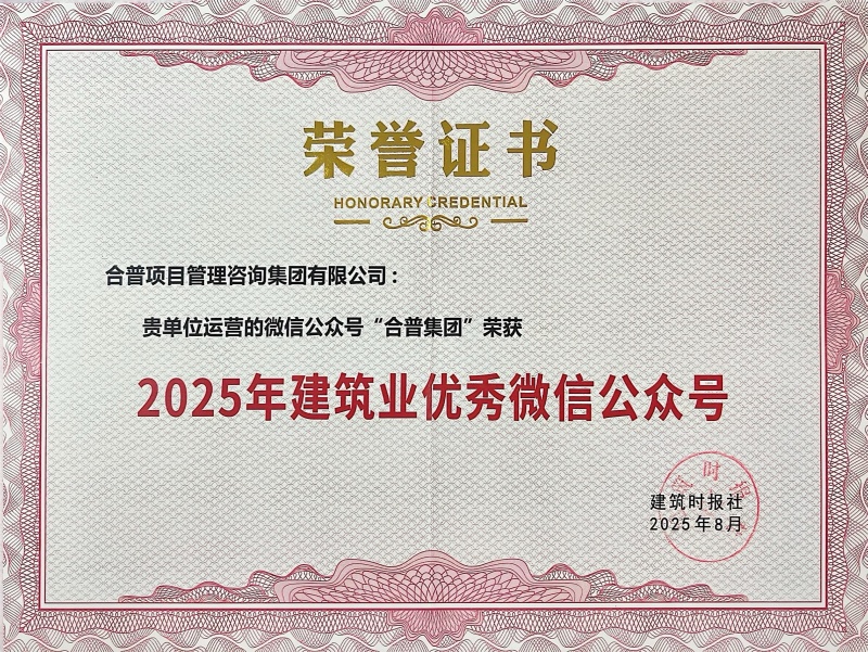 近日,由建筑時報社主辦的2025年建筑業(yè)優(yōu)秀微信公眾號評選結果正式揭曉,合普項目管理咨詢集團有限公司運營的微信公眾號“合普集團”榮獲“2025年建筑業(yè)優(yōu)秀微信公眾號”稱號。