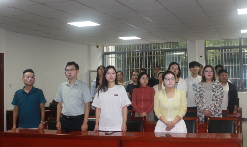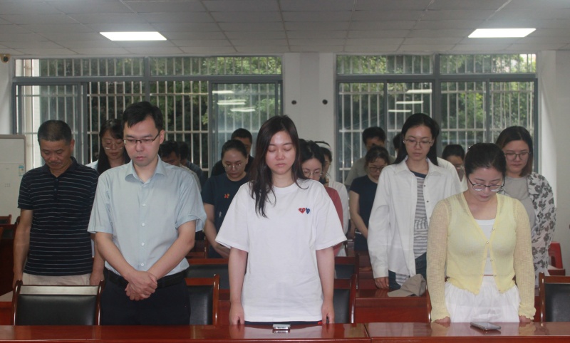 10時(shí)整,全員肅立垂首,進(jìn)行三分鐘默哀。室內(nèi)一片莊嚴(yán)肅穆,歷史與現(xiàn)實(shí)在這一刻交匯,哀思與警醒同在。默哀結(jié)束后,大家深情齊唱《我的祖國(guó)》,“一條大河波浪寬”的動(dòng)人旋律響徹會(huì)場(chǎng),將紀(jì)念活動(dòng)推向高潮。