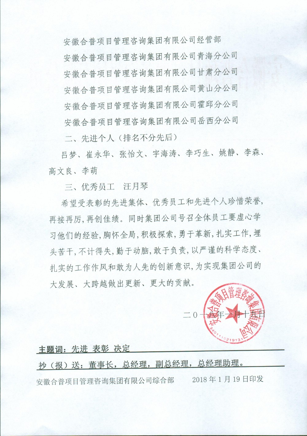 關(guān)于2017年度先進(jìn)集體、先進(jìn)個(gè)人的表彰決定