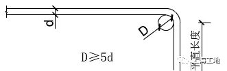 2、鋼筋末端需做1350彎鉤時(shí),HRB335、HRB400級(jí)鋼筋的彎弧內(nèi)直徑D不應(yīng)小于鋼筋直徑的4倍,彎鉤的彎后平直部分長(zhǎng)度應(yīng)符合設(shè)計(jì)要求。