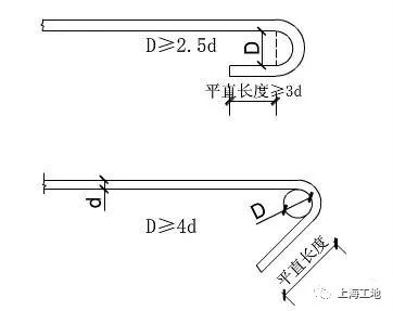 1、當(dāng)圓鋼筋末端應(yīng)做1800彎鉤,彎后平直段長(zhǎng)度不應(yīng)小于3d。