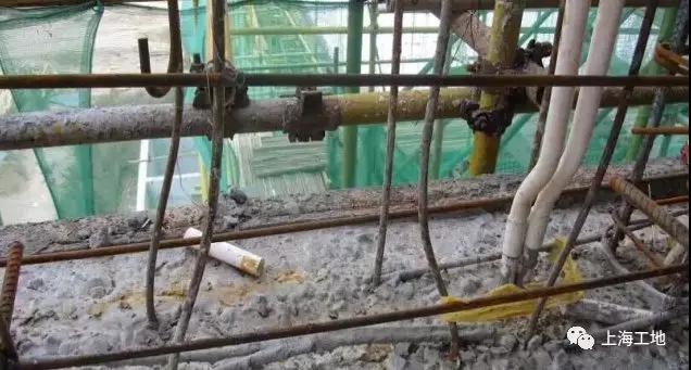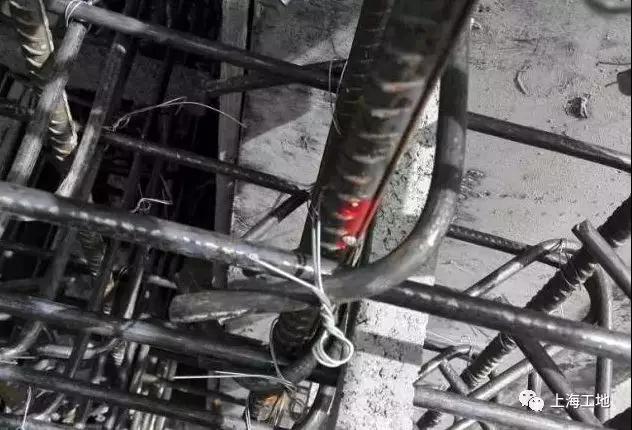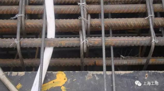 5、澆筑混凝土?xí)r觸動(dòng)鋼筋,沒有及時(shí)恢復(fù)。