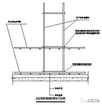 3、澆筑砼前在板面或梁上用油漆標(biāo)出柱、墻的插筋位置,然后電焊定位箍或水平引筋(針對(duì)板墻插筋)固定。