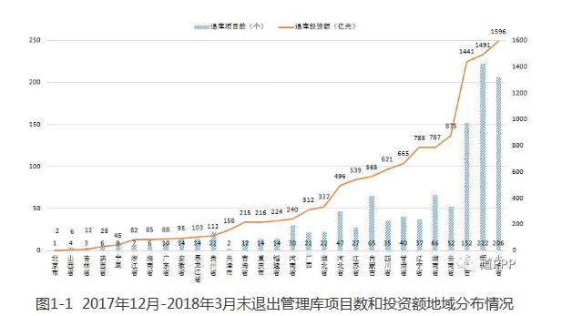 圖1-1 2017年12月-2018年3月末退出管理庫項目數(shù)和投資額地域分布情況