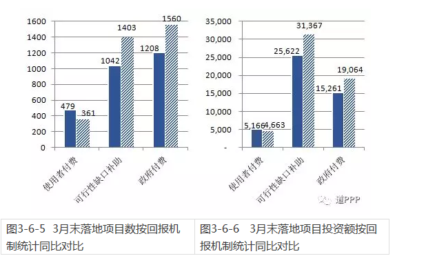 圖3-6-5 3月末落地項目數(shù)按回報機制統(tǒng)計同比對比