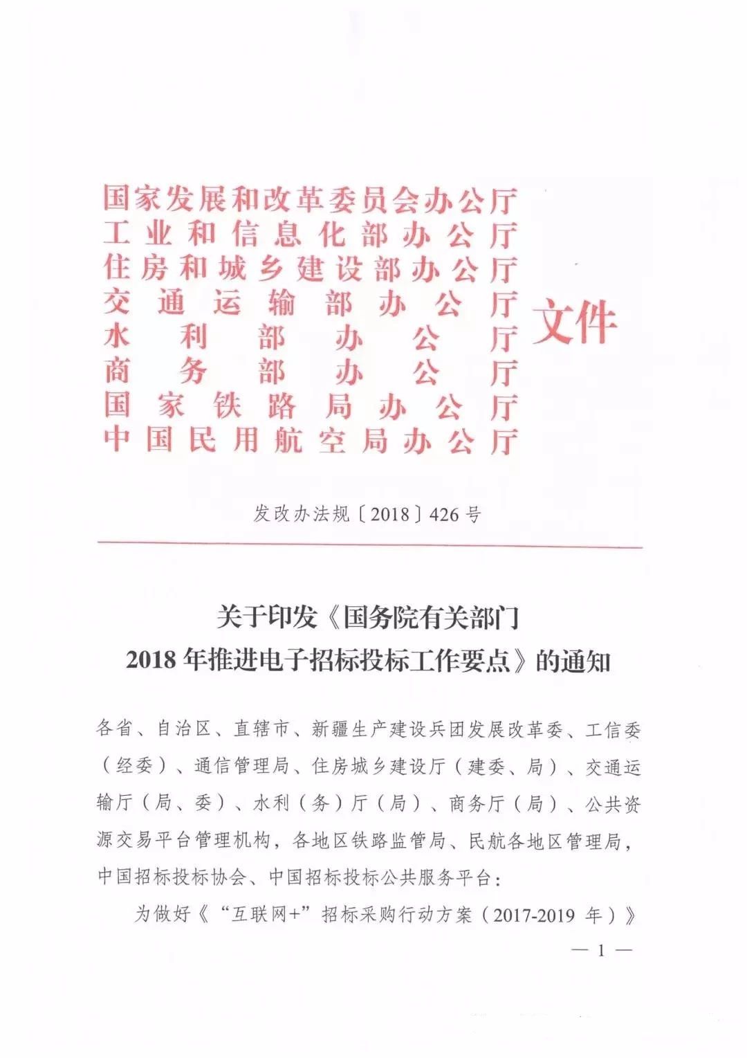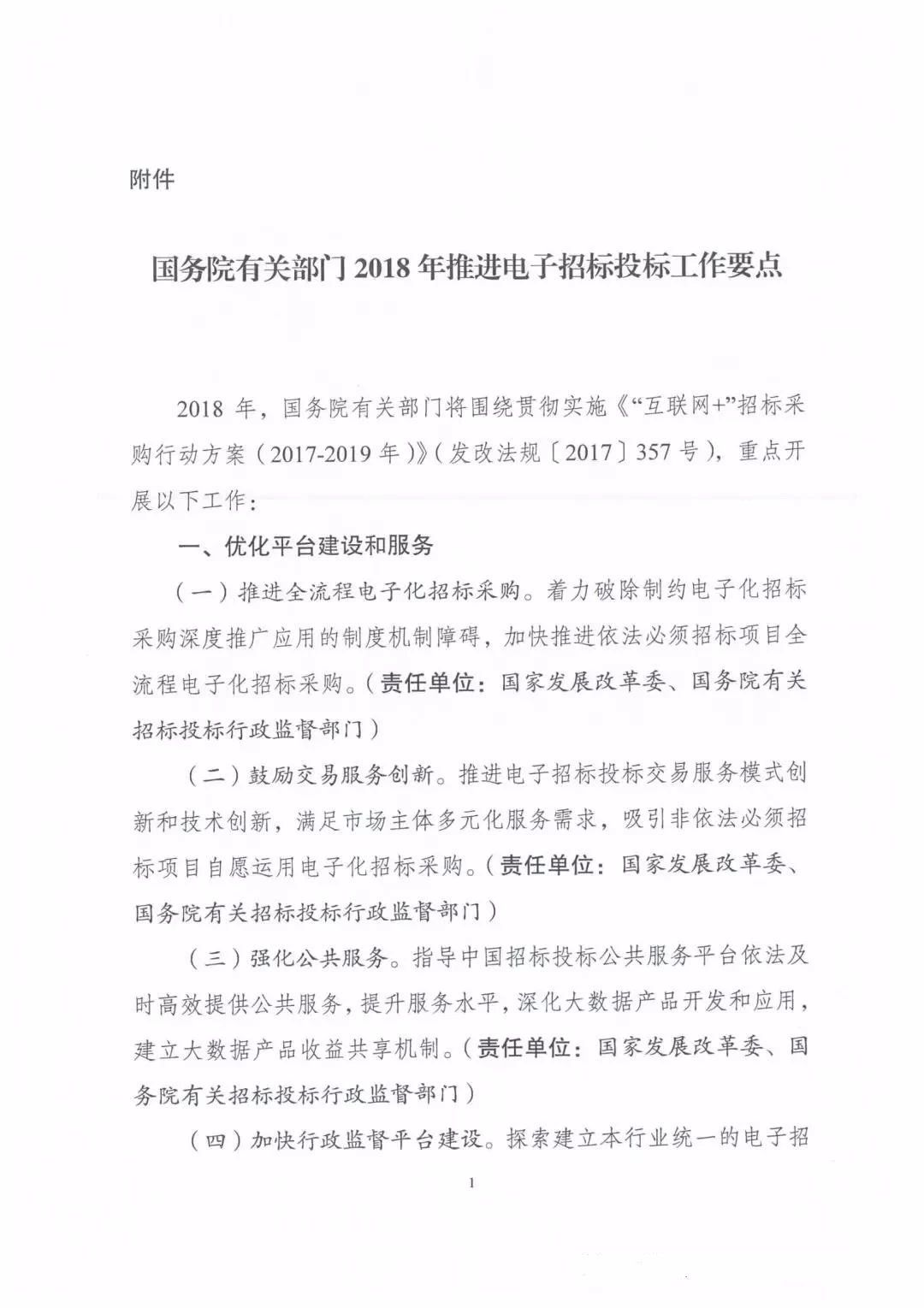 關(guān)于印發(fā)《國務(wù)院有關(guān)部門2018年推進(jìn)電子招標(biāo)投標(biāo)工作要點(diǎn)》的通知