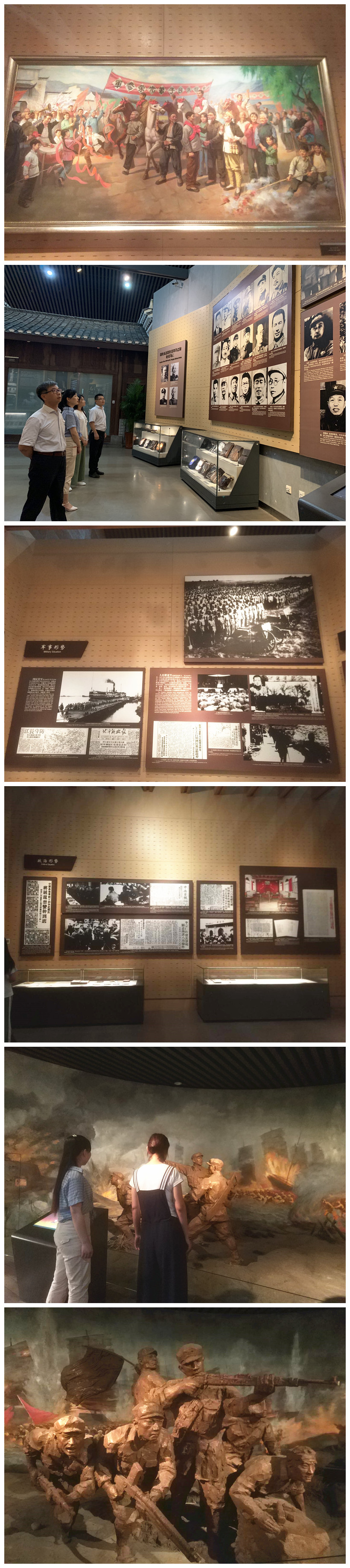 隨后集團(tuán)一行以渡江戰(zhàn)役進(jìn)程為主線,參觀了此次戰(zhàn)役的決策和部署、戰(zhàn)役的經(jīng)過(guò)、歷史意義;展廳呈現(xiàn)的各個(gè)階段歷史人物、歷史事件相關(guān)文物、圖片和視頻及場(chǎng)景再現(xiàn),全景式的描繪了400萬(wàn)軍民奮勇向前的壯闊場(chǎng)景,震撼了在場(chǎng)的每一位參觀者,謳歌了人民戰(zhàn)爭(zhēng)的偉大勝利。