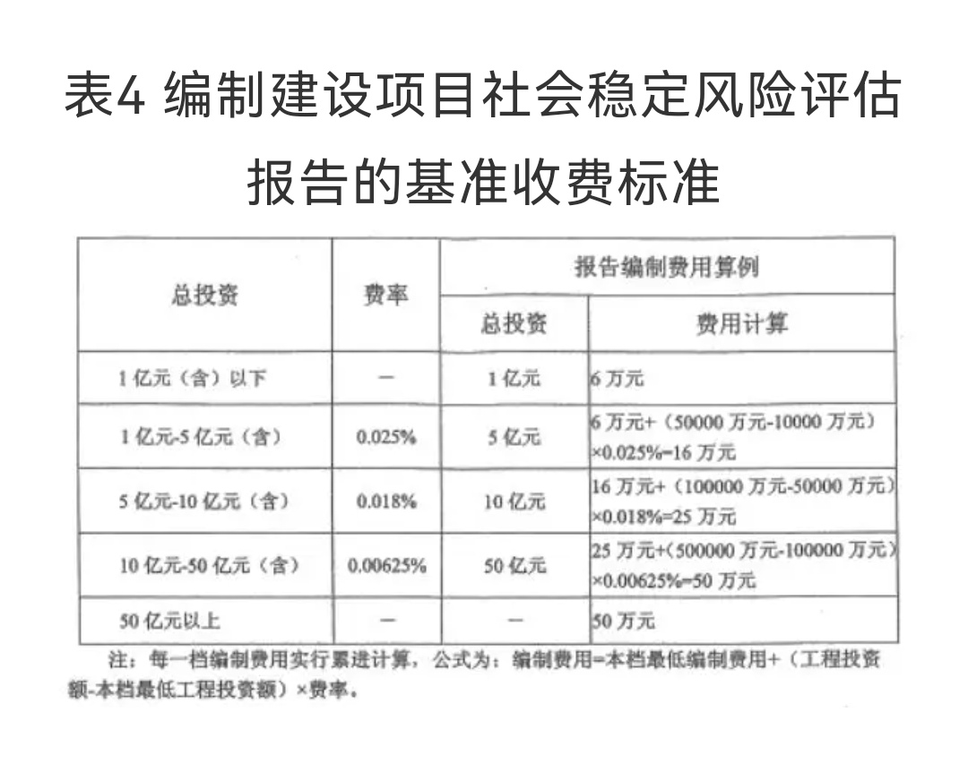 (1)編制建設項目穩(wěn)評報告的咨詢服務收費,以建設項目的估算總投資額為計費基準,根據(jù)分檔費率來綜合確定(詳見表4);