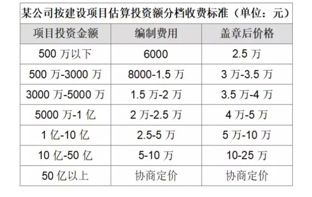 在此列出個別公司的項目可研報告收費標準,來源于網(wǎng)絡,僅做參考,不代表本研究中心的觀點或做法。