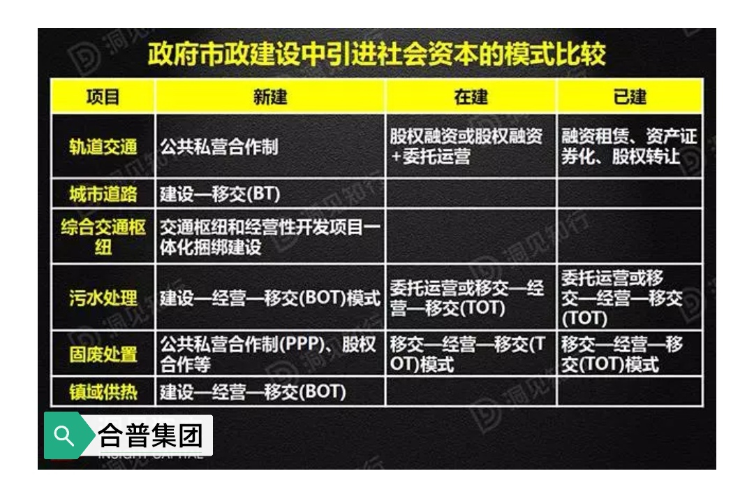 BOT、BT、TOT、TBT和PPP投融資模式詳解