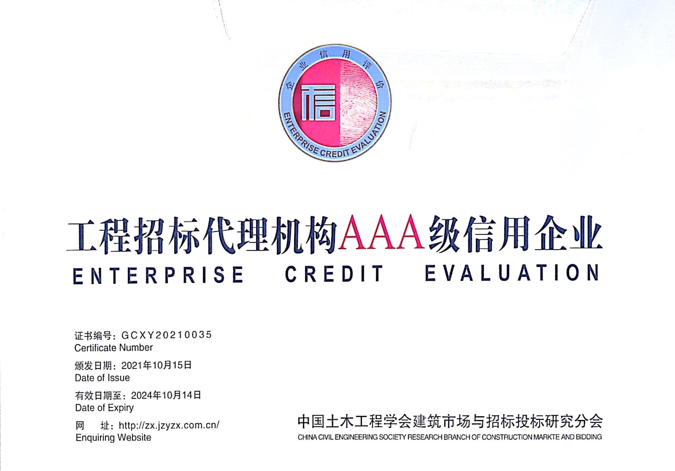 中國土木工程協(xié)會“工程招標(biāo)代理機構(gòu)AAA級企業(yè)”