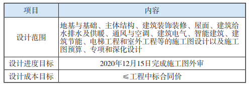 表1 項(xiàng)目設(shè)計(jì)管理目標(biāo)